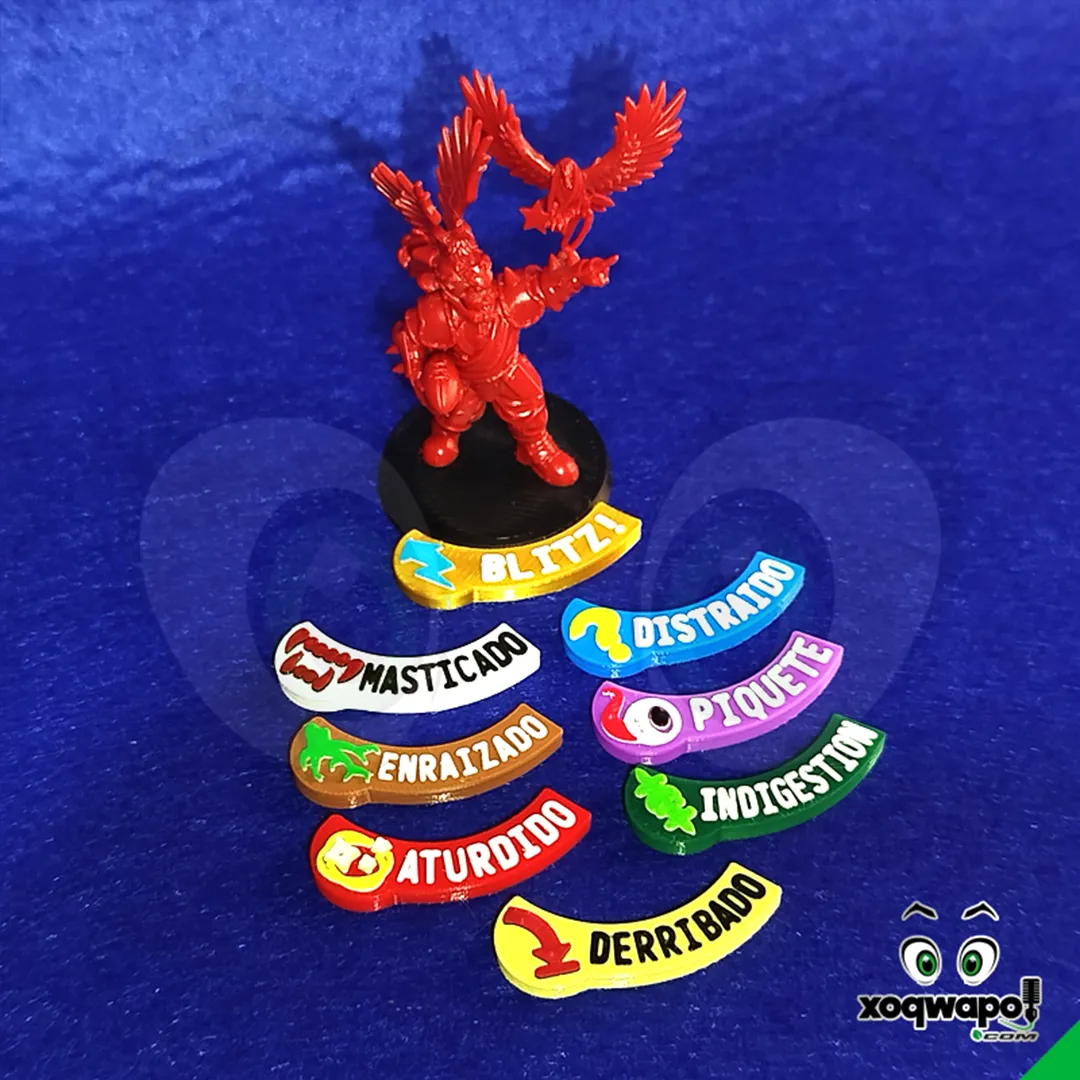 Kit de marcadores de acción impresos a todo color para llevar el control del estado de tus miniaturas durante tus partidas de Blood Bowl. No pierdas tiempo pintando fichas, con este kit de marcadores impresos a todo color sólo tendrás que preocuparte de ejecutar bien tus movimientos en cada partida!