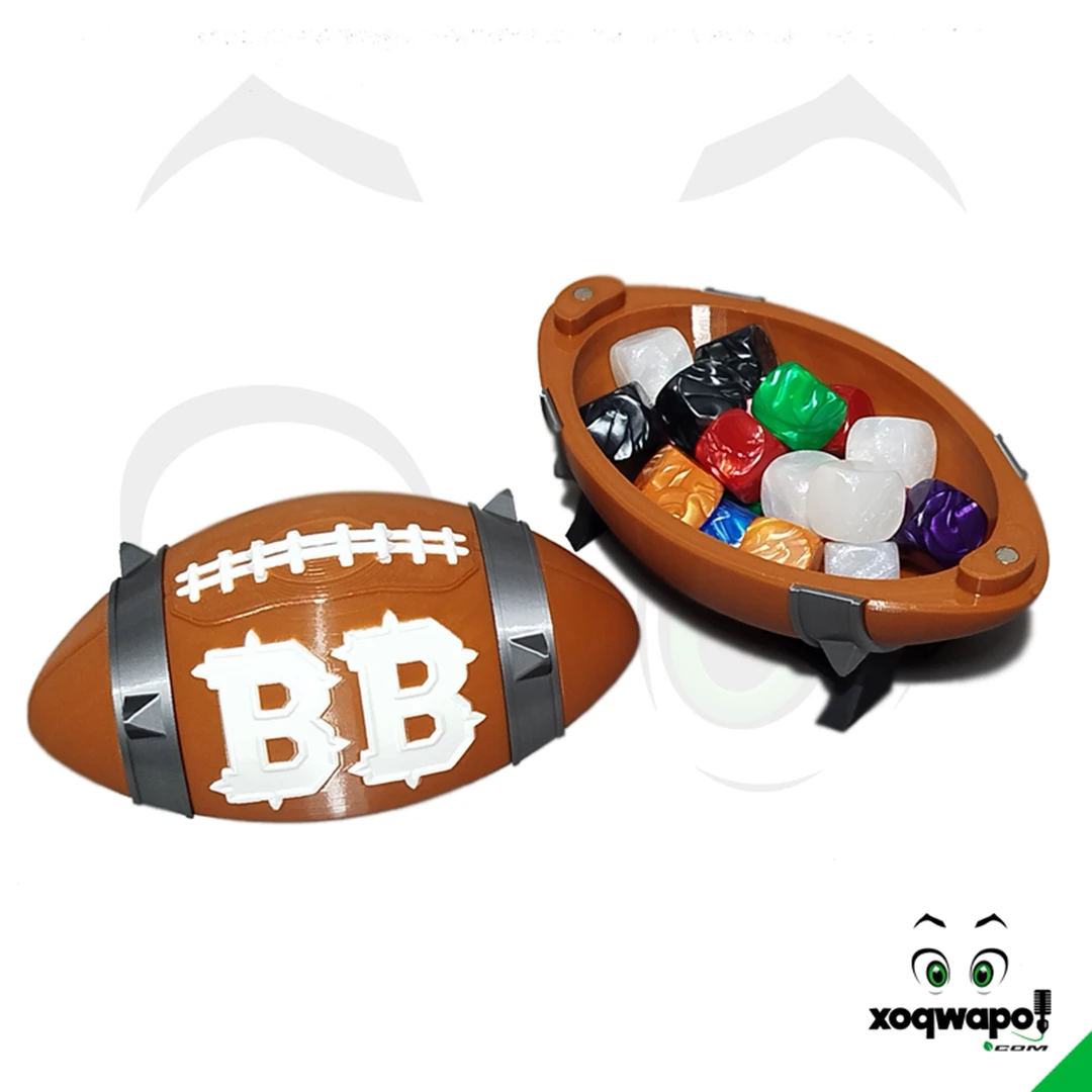 Cajas imantadas para unos 45 dados o lo que tú quieras llevar a tus partidas de Blood Bowl. Caja con forma de balón de futbol para guardar tus dados o lo que quieras llevar contigo a cada jornada de juego.